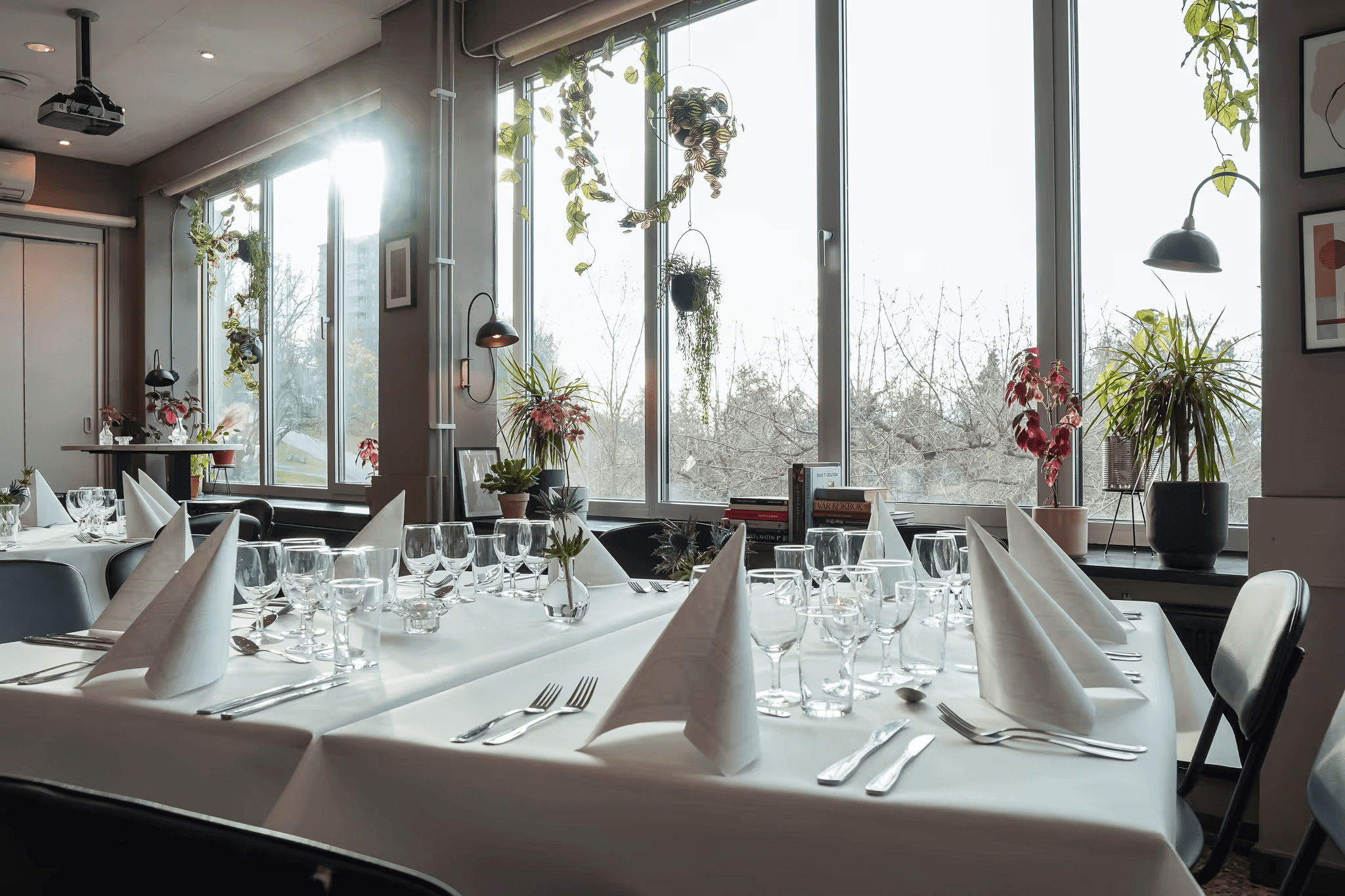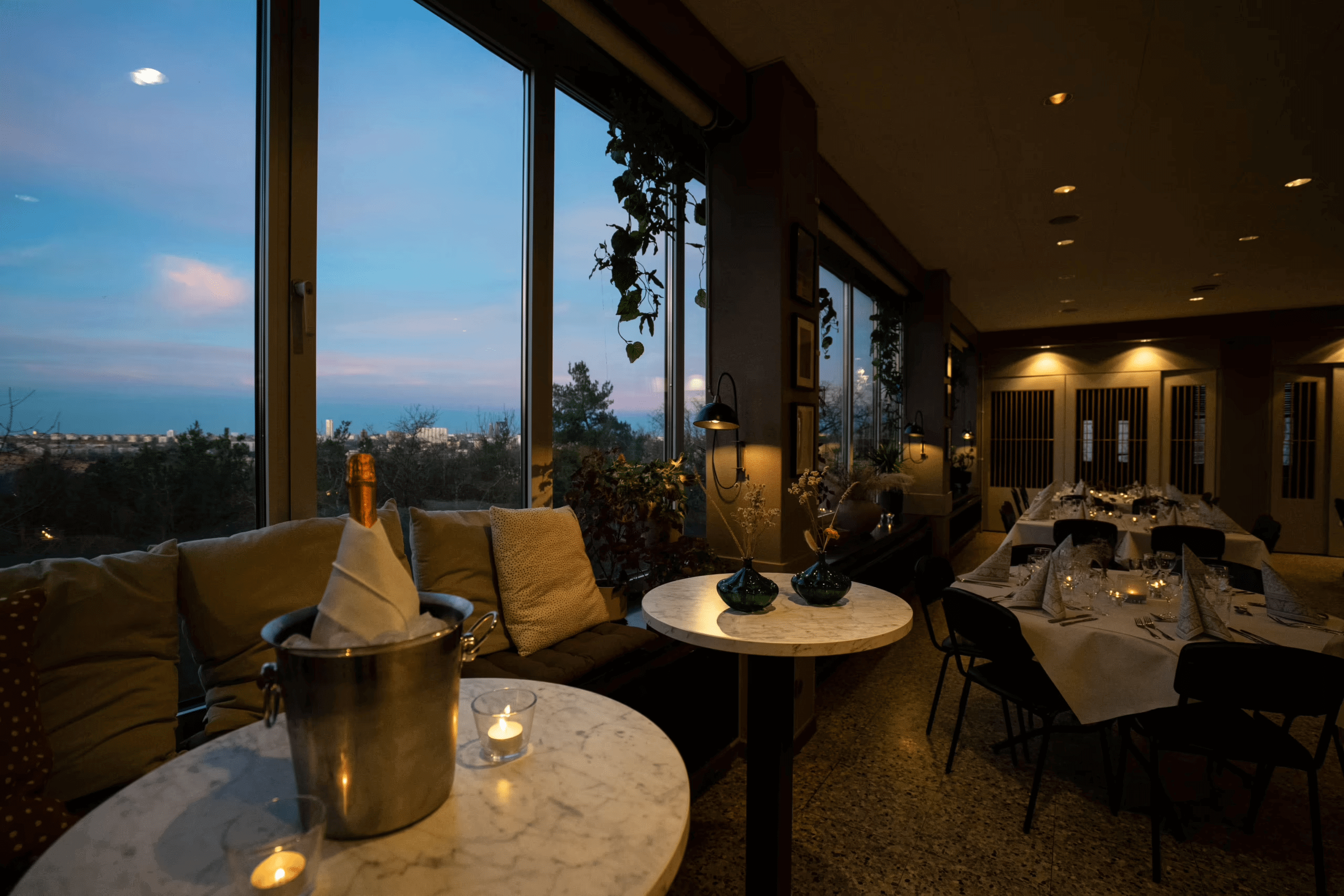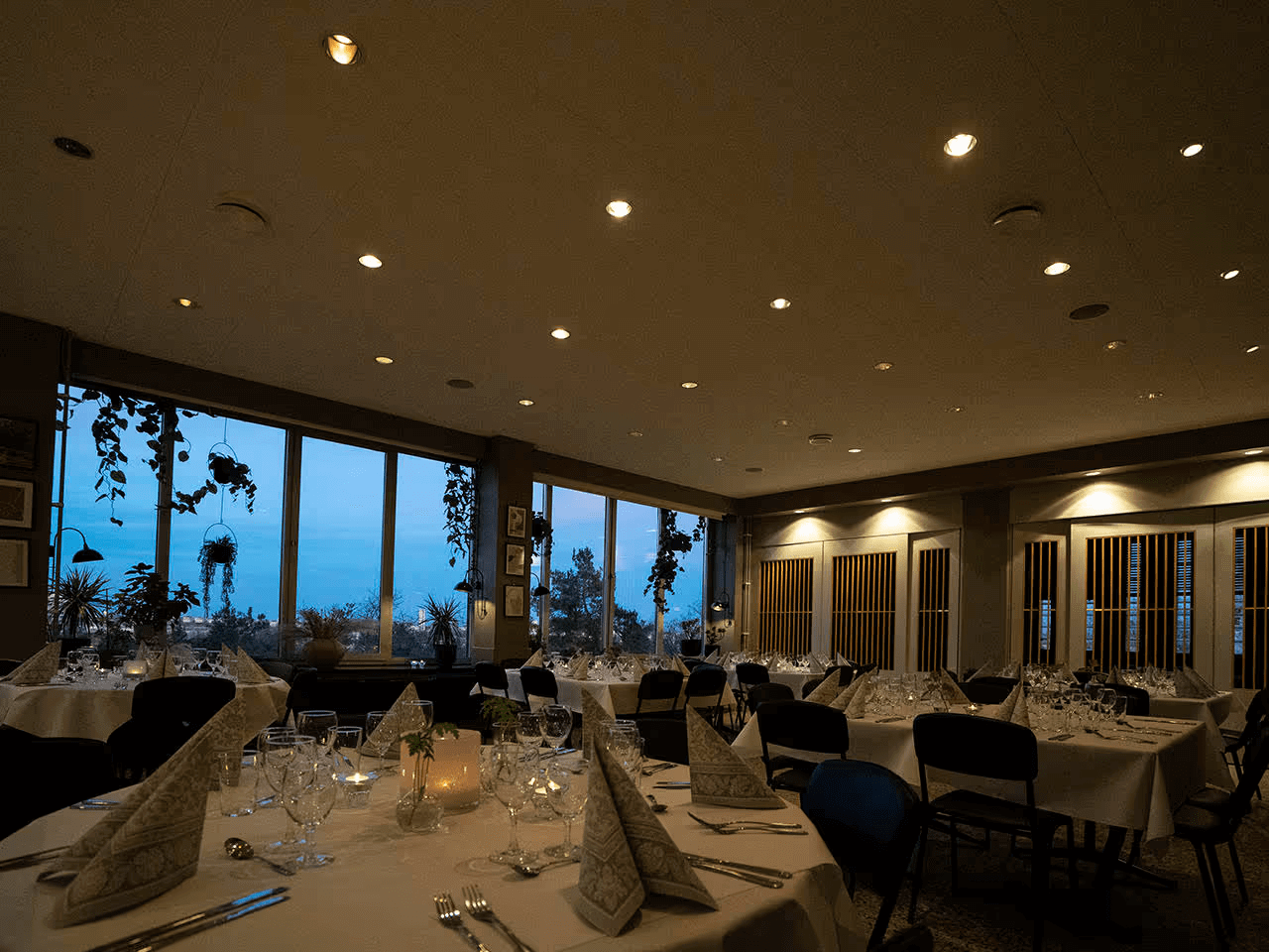 Bright and modern event venue with large panoramic windows and magnificent view of Stockholm. Perfect for weddings, corporate events and dissertations.